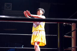 佐藤が止める(右写真)。コスプレが脱げてしまった場合TCO(テクニカル・コスチューム・アウト)で負けとなるのだ。