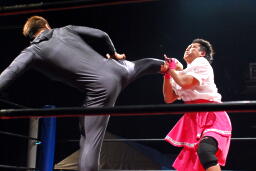 マイケルが助けに入るが鳥羽はマイケルにもハイキック(右写真)