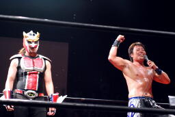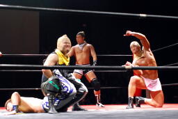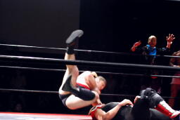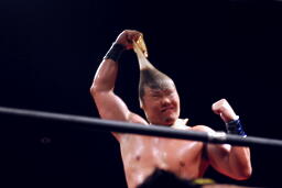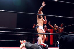 平田に串刺し連弾から友情の蒼魔刀(右写真)、カウント3。