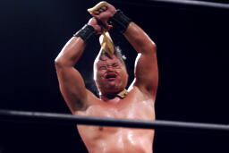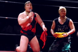 諸橋入って変なおじさんデスロック(右写真)。ウラノにタッチ。