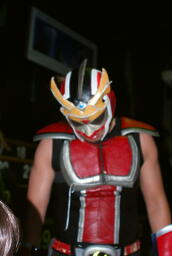 そこに初期型HERO!、その手にはパワードスーツ(右写真)。