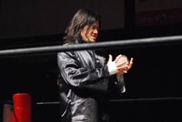 蛇光ガウンで入場の佐々木(右写真)。似合うよなあ。ちょっとアゴがしゃくれてるが。