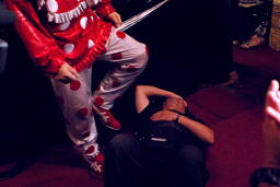 リングサイドカメラマンやってた橋爪記者もスクールボーイで転がすと、他の人にはやらなかったストンピング(左写真)。うはははははははははは。