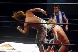 フライングメイヤーもゆっくりと(右写真)、翔太ゆっくりとヘッドシザーズで返す。