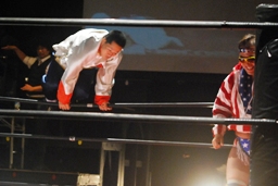 諸橋が趙雲をコーナーにあげて自分も上る(右写真)。