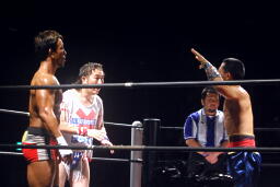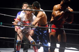 アントンが「宗ちゃんからの提案だけど、俺はこの人(諸橋)と闘いたい!4wayにしよう!」と(右写真)。全員これを了承、タッグマッチから4wayに変更に。