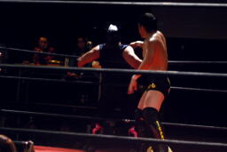 佐藤ミドルキック3連打、高尾を呼び込む。佐藤のサッカーボールキックと高尾のドロップキックがサンドイッチ(右写真)。