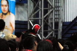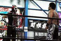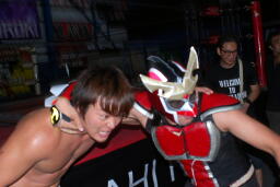 入場するやTAKAののぼりを攻撃するHERO!(右写真)。