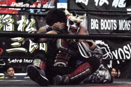 HERO!はHARASHIMAを場外に連れ出しまたTAKAののぼりに(右写真)。