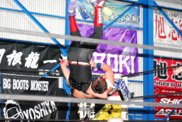 HARASHIMAソバット、ハイキック(左写真)。