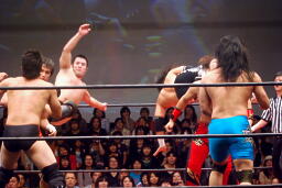 佐々木大輔&関根龍一 vs 彰人&杉浦透 vs ヒロ・トウナイ&円華