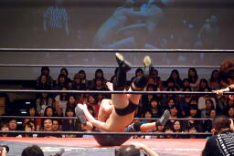 円華ファルコンアロー(左写真)、カウント2。5分経過。