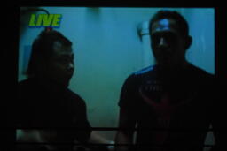 マイケルがチェリーを羽交い絞め、松永「俺は今からお前の乳首をつまむ!」(左写真)