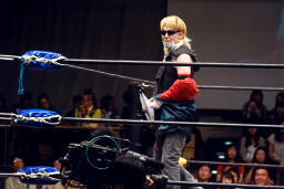 しかし勢いでエプロンに出てしまった諸橋の足をMIYAKOが引っ張る。リングに戻った6号がMIYAKOにスライディングキック、諸橋にロケットパンチ(左写真)、落とす。