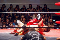 高梨は観客席になだれ込んで喜ぶ。試合後にドロップキックで話を聞いたら「高尾のトペ・コン失敗がキーになった」と語っていた。