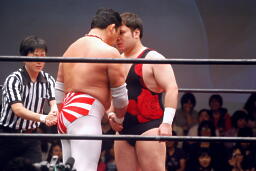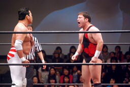 アントンもエプロンに出てサイドヘッドロック(右写真)、