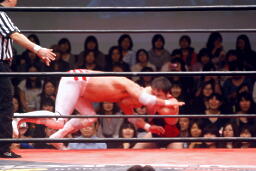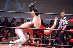 下から足を掛けてエビ固めに(左写真)、カウント3。