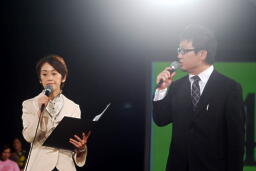 いよいよ結果発表の瞬間(左写真)。23時からニアライヴのため発表大会は1時間でまとめなければならない。
