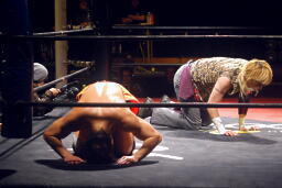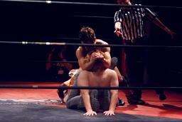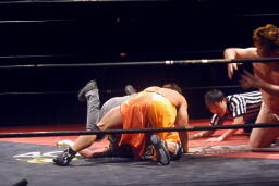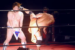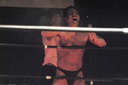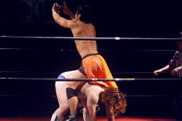 ディーノはマイケルが出てくる前に終わらせようと男色スープレックス(右写真)。