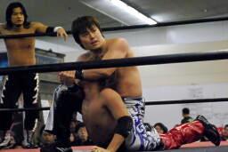 佐々木パンチ、スリーパー(左写真)。リリースしてHARASHIMAにタッチ。