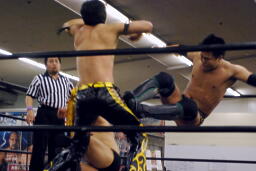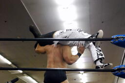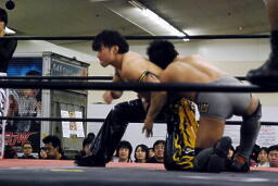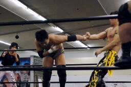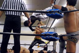 KUDOが2人を場外に落としてMIKAMIがトルニージョ(左写真)。
