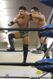 先発はKUDOと澤。バックの取り合い(左写真)、首の取り合い。