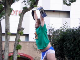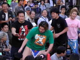 横断歩道を渡って広場に入るなり観客席になだれ込むディーノ(右写真)。