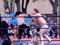 ディーノバック取る、佐々木エルボーでブレーク。佐々木エルボー(右写真)、