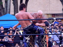 アームドラッグの打ち合い(右写真)から両者好き勝手にポーズ、HARASHIMAと星誕期にタッチ。