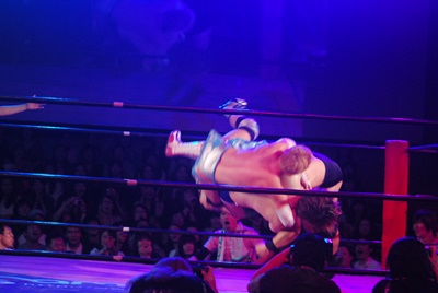 リバースエビ反りジャンプ(右写真)、高木かわす。