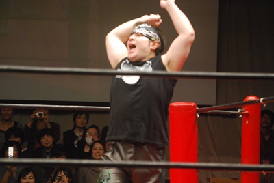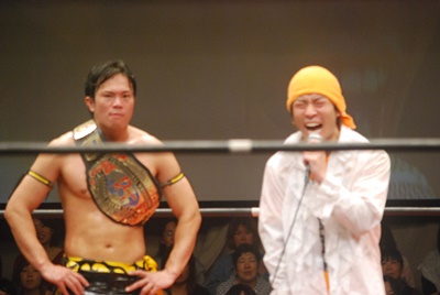 高梨「来月の大阪府立、超満員にしてやる!そして、勝つのはこの、DDT史上最汁レスラー、マサ高梨だ!」 (右写真)