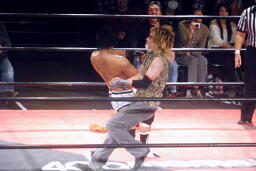 6号リングイン、平田は対戦を拒否(右写真)、ニラにタッチ求める。ニラ「プロ意識を持て!」と叱責。