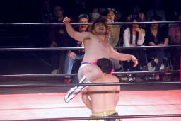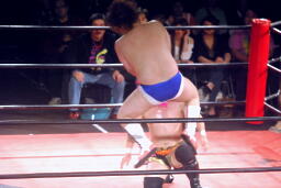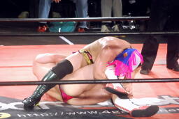 佐藤はディーノのタイツに頭突っ込んだままディーノの足を取る(右写真)。