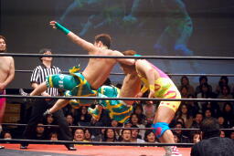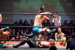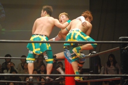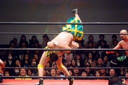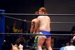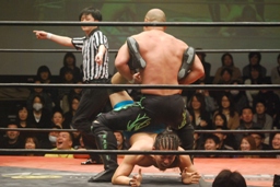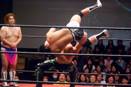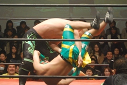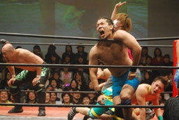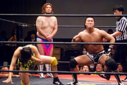 長井S.O.S.の2人を立て続けにボディスラム(左写真)。