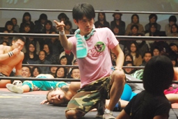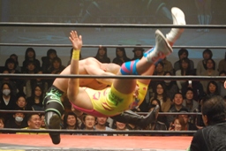 星誕期も突っ込むが長井かわしてスクールボーイ(右写真)、カウント3。