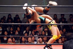 平田突っ込む、飛香ブロックバスターホールド(右写真)。