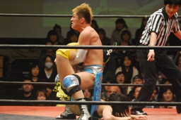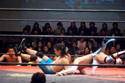 長井が彰人を逆エビ固め(右写真)