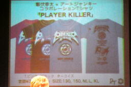 続いて飯伏がリングに。12/31からアートジャンキー東京とのコラボTシャツを発売(左写真)、と。飯伏は昨日ギプスが外れ、リハビリを開始したものの、まだ腕が上がらないので寝るのも髪を洗うのも一苦労、だそうだ。