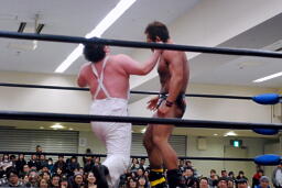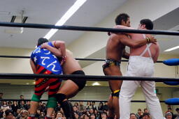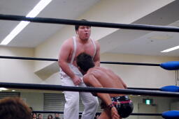 YAZAWAがマイケル、大家がばってんにスリーパー(左写真)。