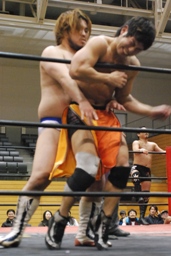 吉田は首固めに(左写真)、カウント3。