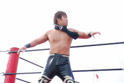 リングを降りる王者(左写真)。今日はイベント試合ということもあって前哨戦的色合いは薄かったが、MIKAMIはオルフェーヴルの新バージョンも出してきた。31日の選手権はどうなるか?