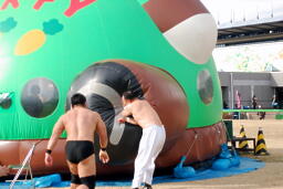 高木ついに越中の顔をフアフアターフィーに突っ込む(左写真)。中で遊んでた子供たちは驚いただろうなあ。