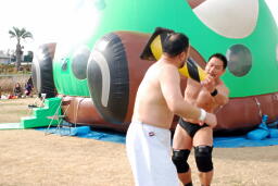 試合終了後は広場でそのまま写真、サインなどの交流会。KUDOら上半身裸の選手はかなり寒そうであった。予想会などのイベントはなし。