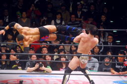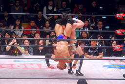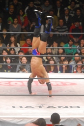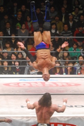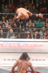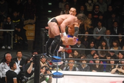 その場跳びシューティングスタープレス(右写真)はカウント2。