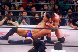 回転エビ固めの応酬、PACが押さえ込む(右写真)、カウント2。