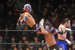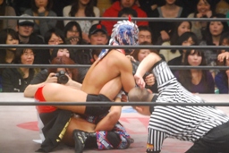 ウルトラ・ウラカン・ラナ(左写真)、カウント2。YAMATOはKAGETORAにタッチ。