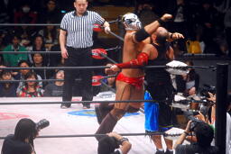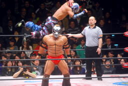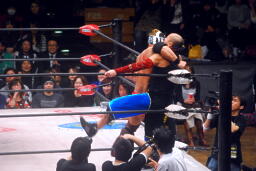 神田ロープに飛ぶ、KAGETORAキャッチして影縫(右写真)、カウント3。