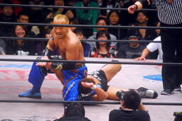 ネックロックからバタフライロック(右写真)、望月ロープ。5分経過。