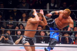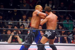 エルボーの打ち合い(右写真)、チョップの打ち合い。