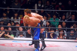 コーナーに上げて雪崩式ブレーンバスター(左写真)、カウント2。